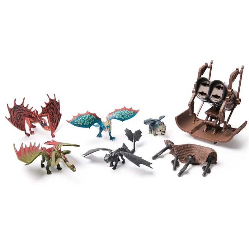 Acest set Dragon Catcher include mai multi dragoni, un vanator de dragoni si o catapulta functionala cu plasa lansabila.