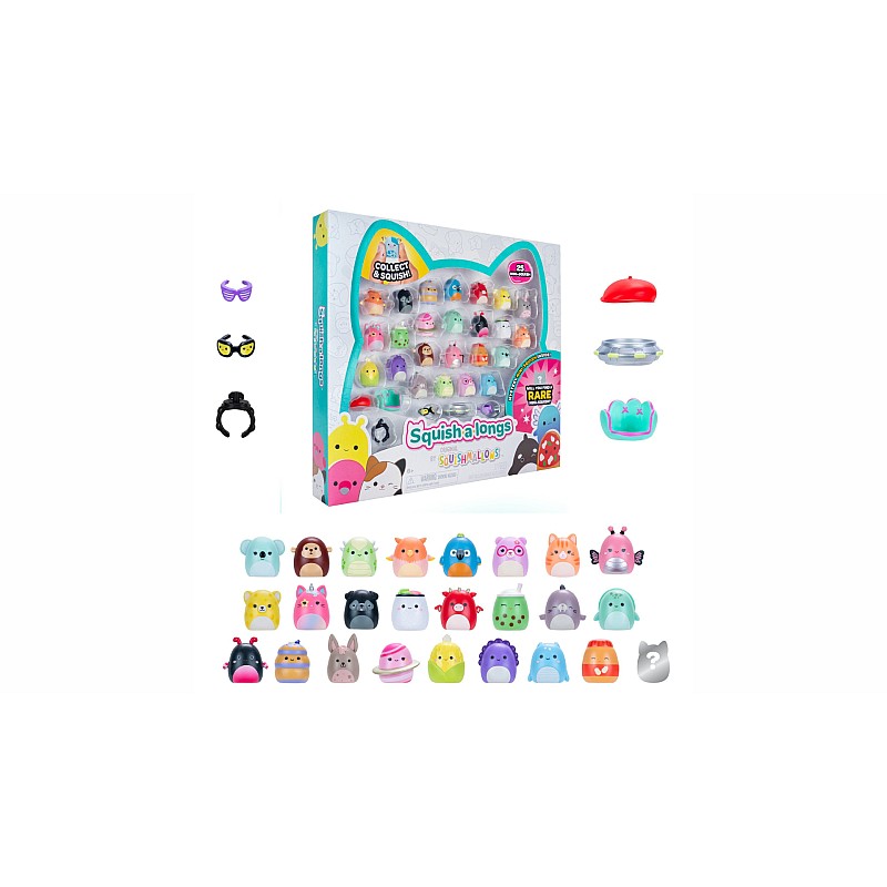 - 25 de figurine Squish-a-longs fermecătoare, fiecare cu personalitatea și designul său unic.