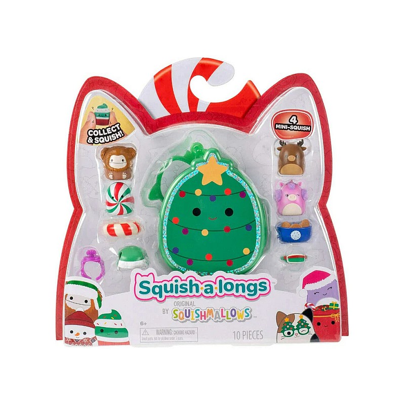 Strângeți jucării oriunde vă duceți cu Squish-a-longs Clip-a-longs! Această husă elegantă de transport Mini-Squish are tematică de sărbători și include 4 Mini-Squish de colecționat.