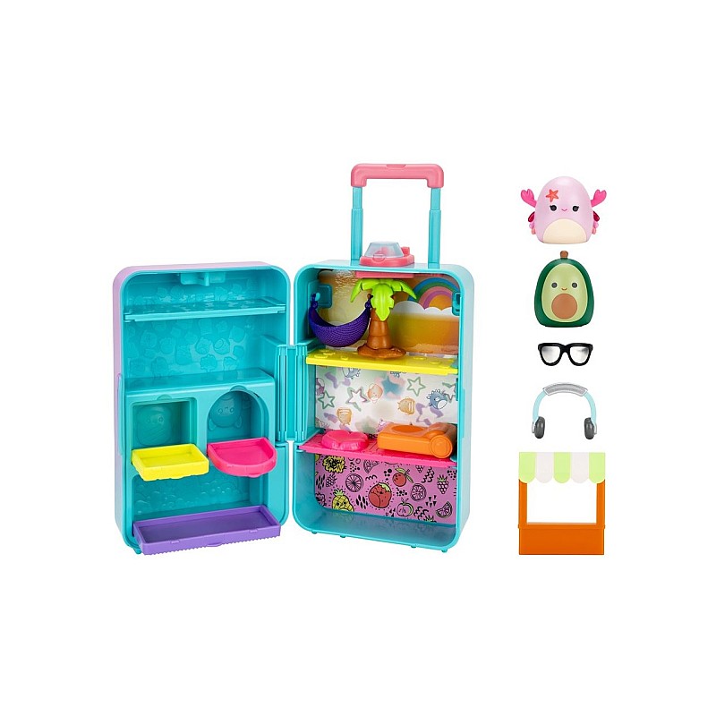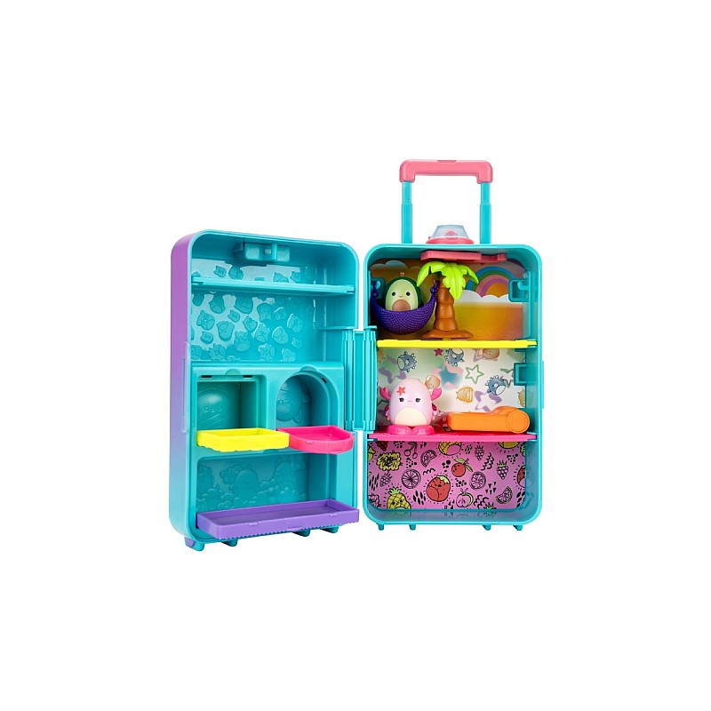 Personalizează-ți experiența de joc cu rafturi mobile, compartimente ascunse și accesorii distractive precum un palmier și un hamac, unde prietenii Mini-Squish precum Austin Avocado și Cailey Crab se pot relaxa cu stil.