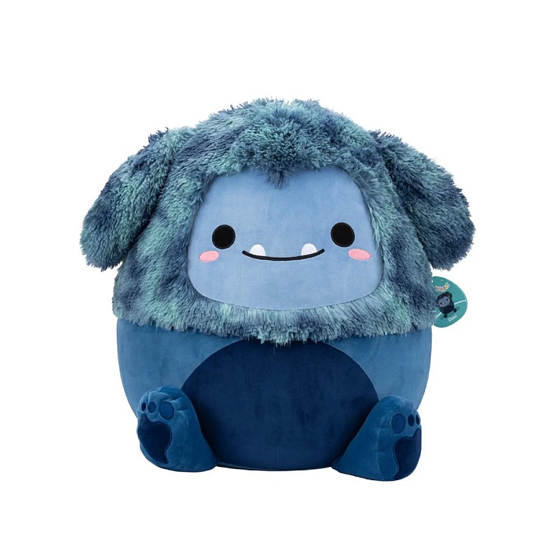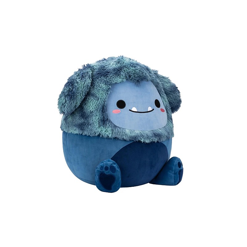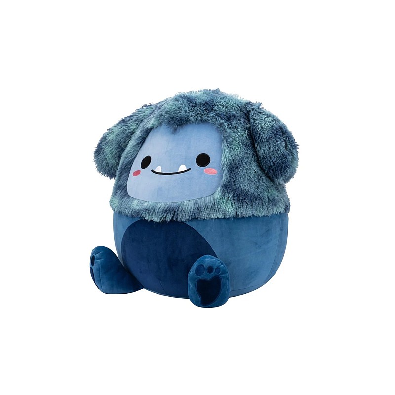 Adorabilă jucărie moale Squishmallows în forma lui Dannie Bigfoot în nuanțe de albastru.