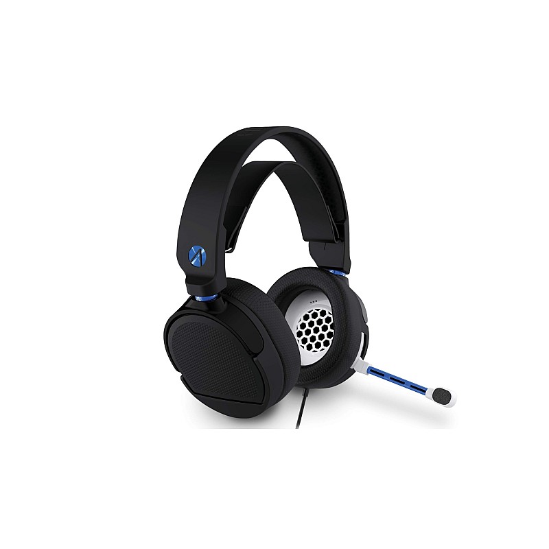 Căștile stereo de gaming Stealth SP-Shadow V Premium Stereo în negru și albastru sunt concepute pentru a vă îmbunătăți experiența de joc pe PlayStation 5.