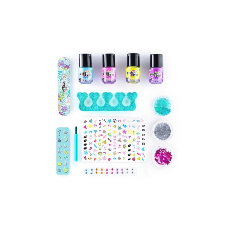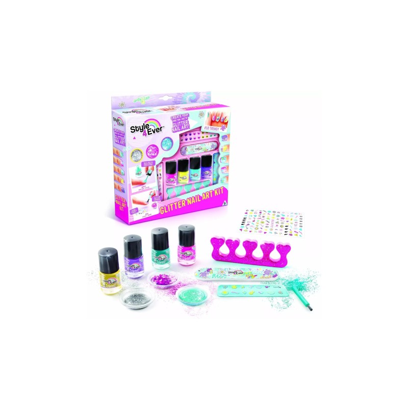 Conține tot ce ai nevoie pentru a crea unghiile perfecte acasă – de la lacuri de unghii în culori vibrante, până la pulberi de glitter și diverse accesorii decorative.