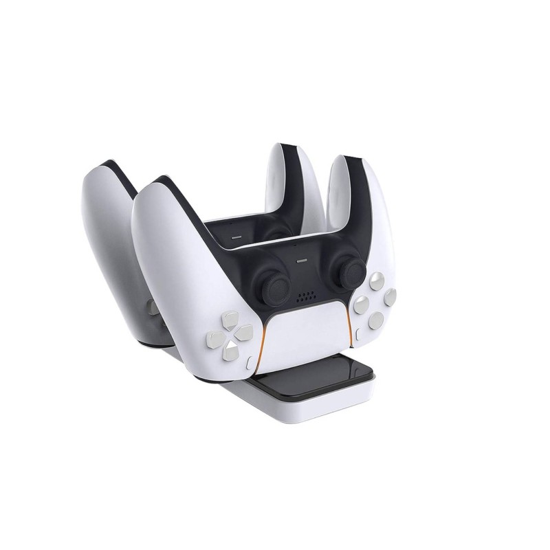 - Baza de încărcare și depozitare pentru 2 joystick-uri PlayStation 5 Dual Sense.