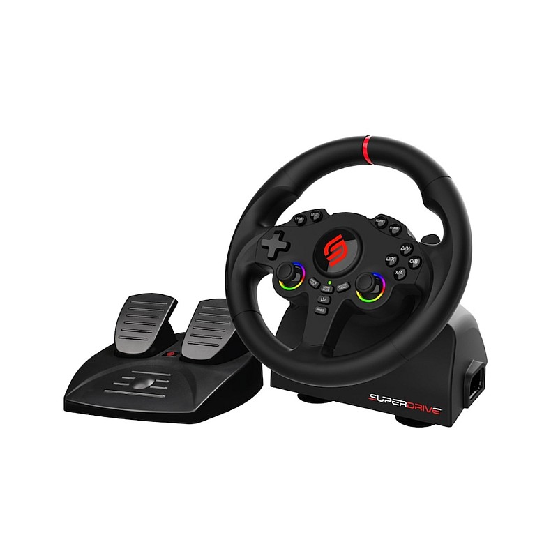 Diametrul de 22 cm al volanului și unghiul de rotație de 180° vă oferă o senzație realistă de conducere, in timp ce sensibilitatea reglabilă vă permite să adaptați controlul la preferințele dvs.