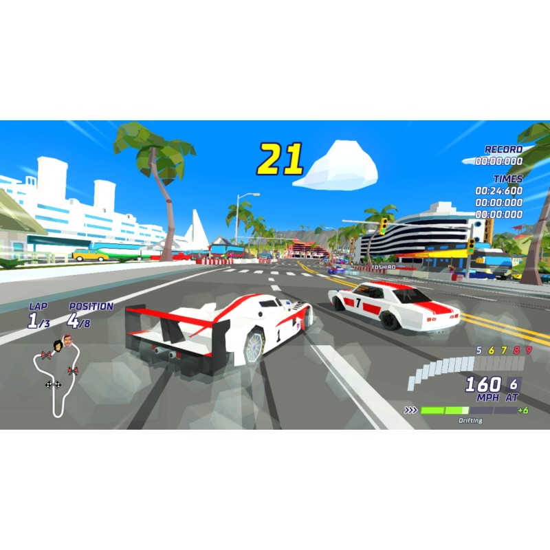 Hotshot Racing este un joc de curse în stil arcade extrem de rapid, care îmbină manevrabilitatea drifturilor, grafica retro foarte clară și un incredibil simț al vitezei pentru a crea o experiență de conducere antrenantă.
