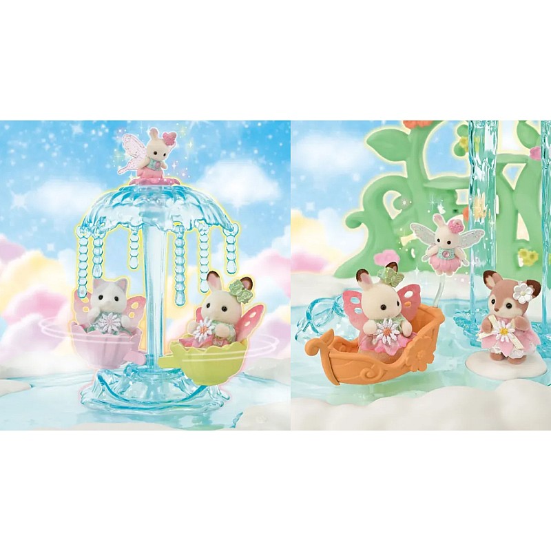 Vine cu un suport de zână pentru a face Zâna Florilor să „zboare”! Există o zonă de cafenea cu o masă și un scaun în Castelul Zânelor și fiecare figurină copil poate să stea în Barca Frunzelor. Zâna florilor și puiul de iepuraș de ciocolată poartă un cercel drăguț.