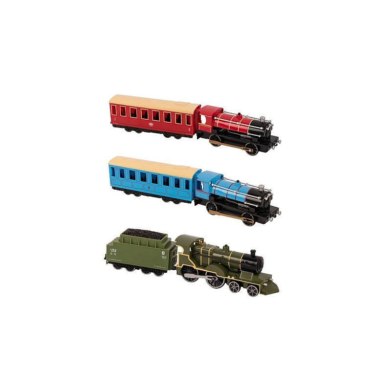 Furnizat în culori asortate, fiecare unitate are un motor de tren și un vagon.