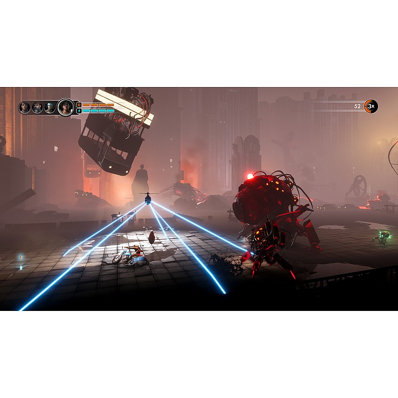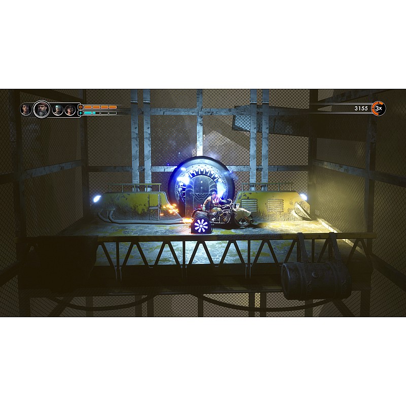 - Ia parte la luptă cu o motocicletă distructivă, alimentată cu octanism și cascadorie care sfidează moartea, plasată într-o lume retro stilizată vizual. Comută între patru personaje - unice în timp ce faci ravagii.