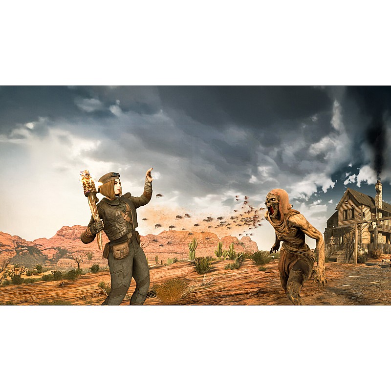 - Cooperează sau Concurează – Lucrează împreună pentru a construi așezări sau unul împotriva celuilalt într-un pustiu unde zombii și haiducii stăpânesc pământul.