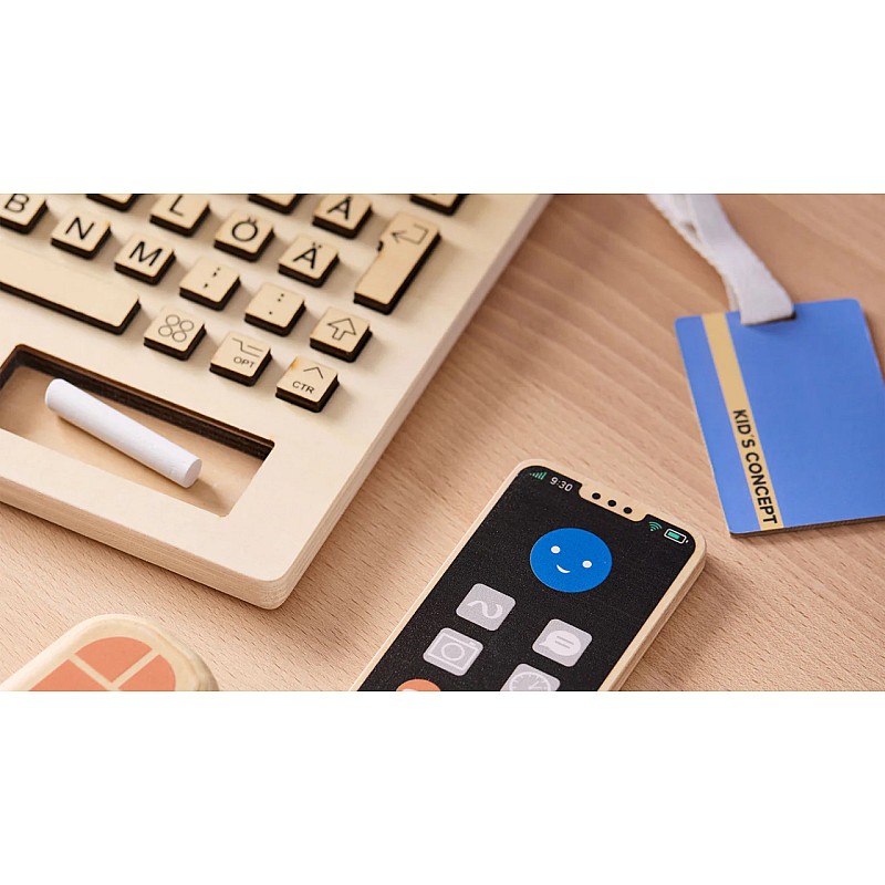 Un set cu computer din lemn este o jucărie ideală pentru copiii mici care iubesc să îi imite pe adulți.