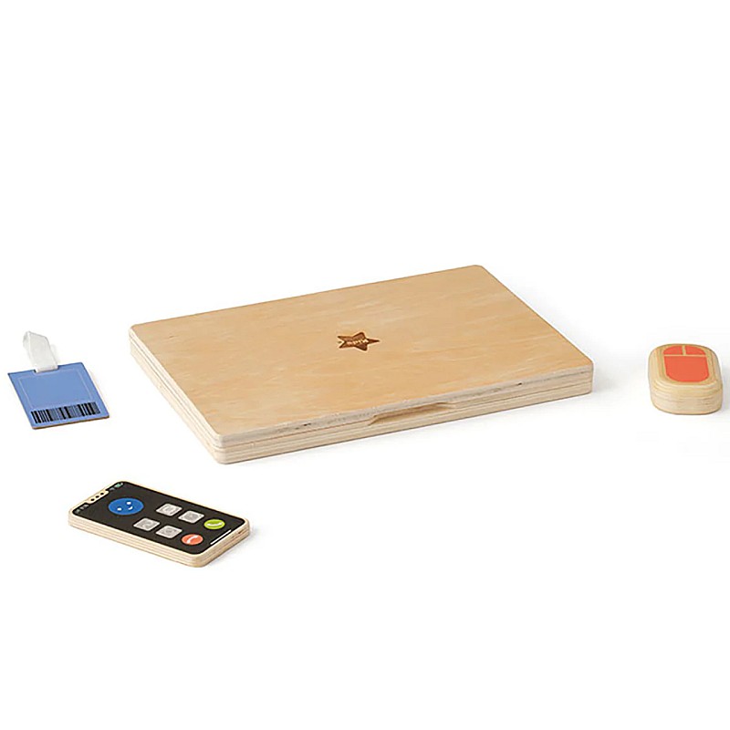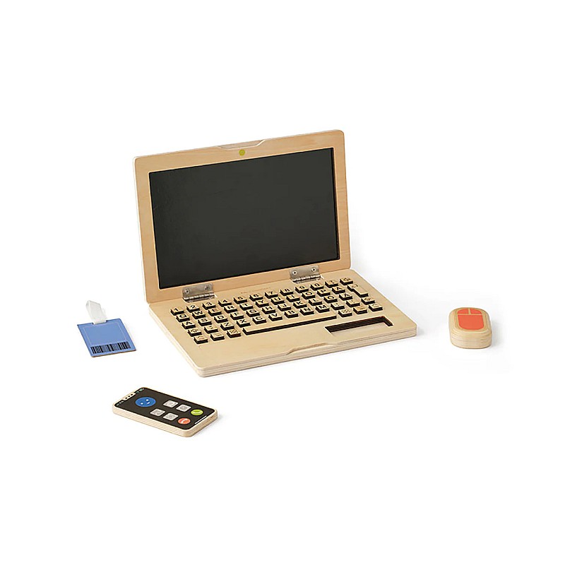 Acest set laptop din lemn este o jucărie ideală pentru copiii mici cărora le place să imite ceea ce fac adulții.