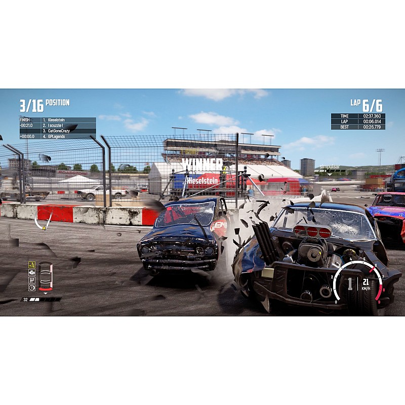 - Luptă pentru campionate, câștigă experiență, deblochează noi upgrade-uri și mașini și devine campionul Wreckfest din toate timpurile