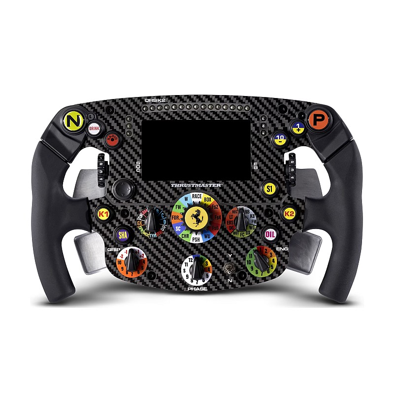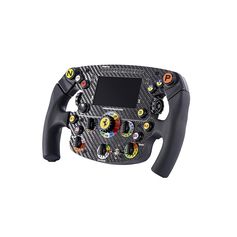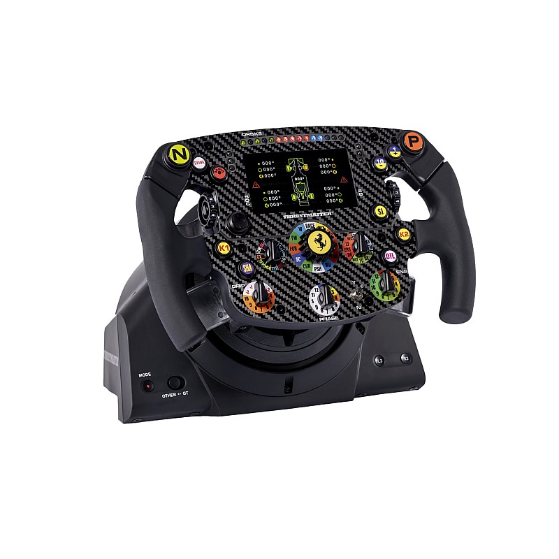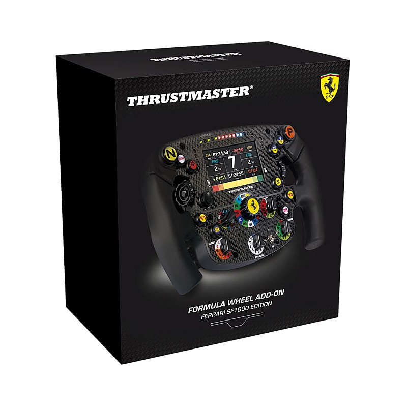 Thrustmaster Formula Wheel Add-On Ferrari SF1000 Edition dispune de eticheta iconică și marcajele oficiale regăsite pe roata reală, precum și de un afișaj IPS LCD de 4,3 inci (109 mm) care afișează până la 69 de elemente de informații despre curse.