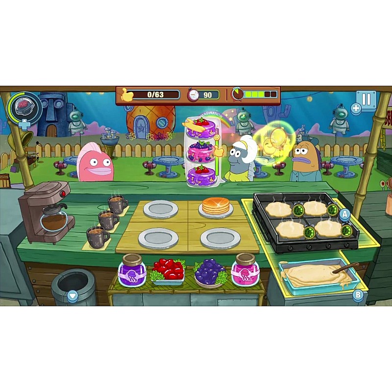 - Gătește și servește mâncăruri delicioase, inclusiv Krabby Patties, clătite, BBQ și multe altele! Treci în spatele grătarului ca SpongeBob SquarePants pentru a oferi servicii rapide locuitorilor din Bikini Bottom.