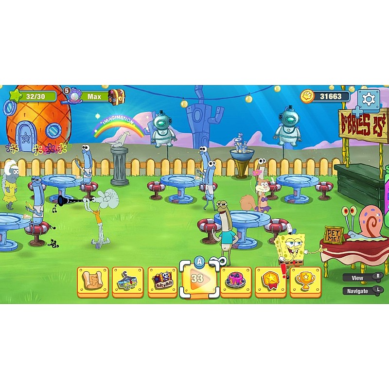 - Creează-ți propriul avatar personalizat pentru joc și interacționează cu personajele costumate în timp ce explorează Bikini Bottom.
