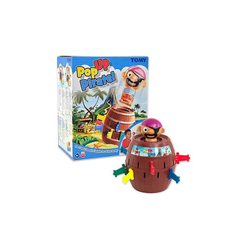 Este un joc interactiv de acțiune în care toți jucătorii participă alternativ, introducând săbii colorate într-un butoi în care se află un pirat.