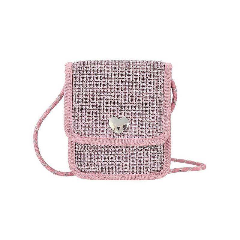 Poseta este fabricata din pietre roz si mult sclipici și un buton drăguț argintiu in forma de inimă.