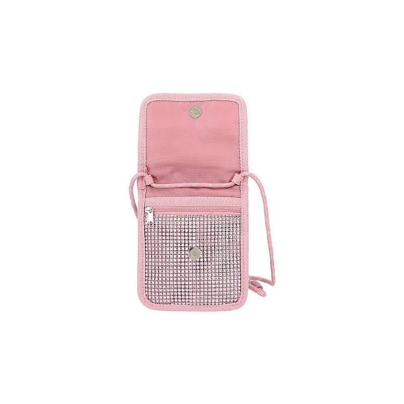 Poseta de umar este realizată complet din material sclipitor, avand un compartiment transparent pentru biletul de autobuz pe spate.