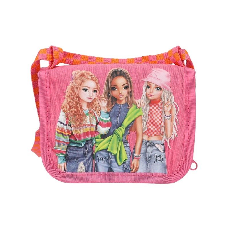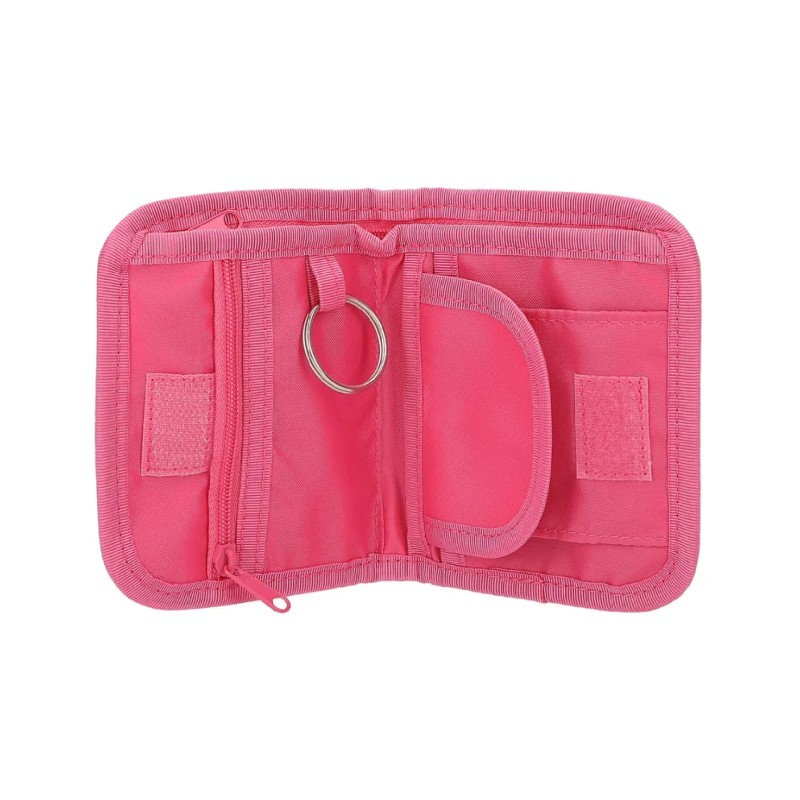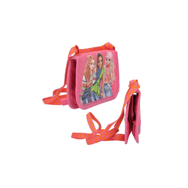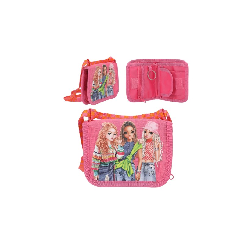 Geanta TOPModel JOY roz are un buzunar pentru monede cu velcro, un buzunar pentru notițe cu fermoar, diverse alte compartimente (inclusiv buzunar pentru cardul cu numele) și inel pentru chei.