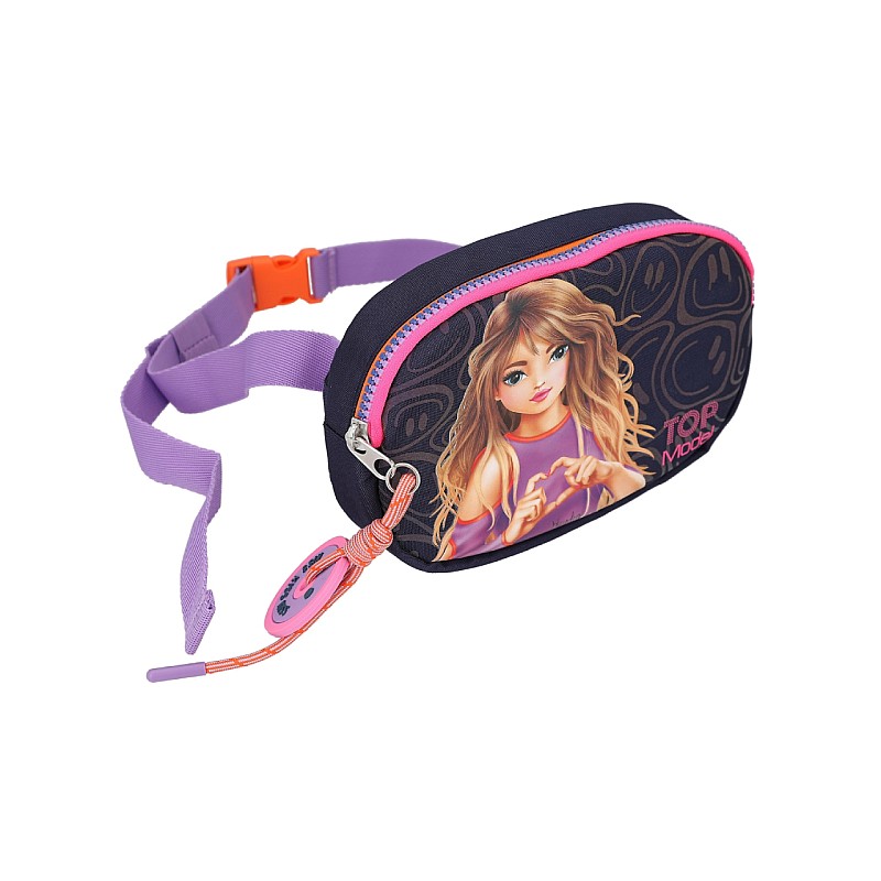 Cu o curea cu lungime reglabilă și un pandantiv simpatic HAPPY pe fermoar.