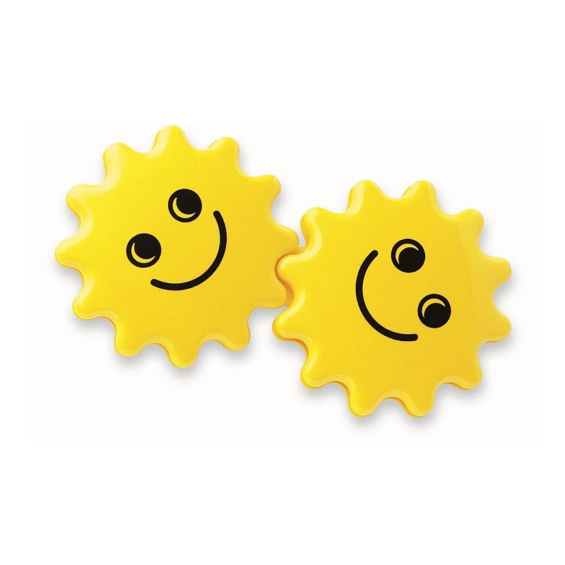 Acești sori gemeni zâmbitori produc o mișcare fascinantă care încurajează cu adevărat coordonarea mână-ochi.