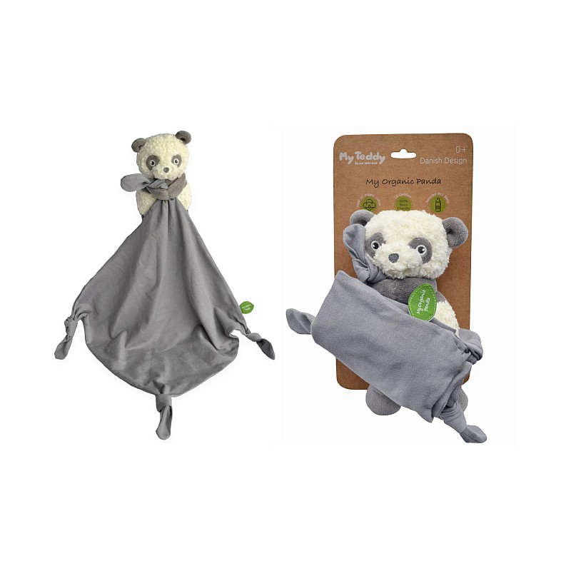 My Organic Panda cu detalii de catifea gri și căptușeală moale.