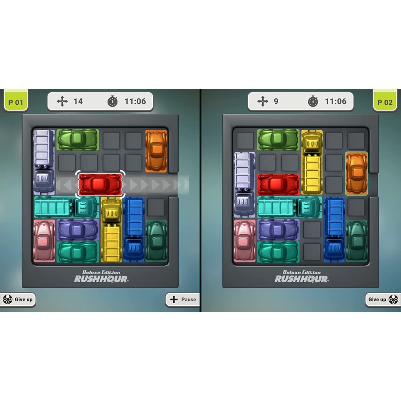 Nu numai că poți juca Rush Hour® Deluxe singur, dar poți juca față în față cu alți jucători pentru a-ți măsura puterea creierului.