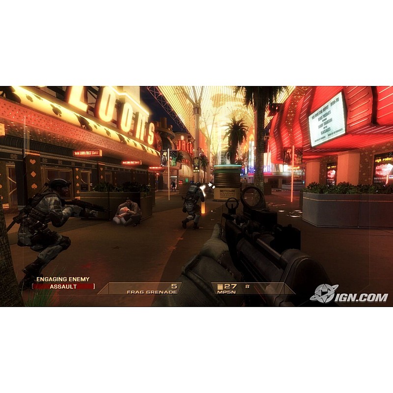 Rainbow Six: Vegas prezintă o nouă echipă de Rainbow Warriors, pe măsură ce se duce pe străzile Americii. Străzile din Las Vegas sunt haotice, un asediu terorist escaladat în "Sin City" amenință să ia terorismul mondial la noi înălțimi incontrolabile. Viitorul securității globale atârnă în echilibru în timp ce luptați pentru a apăra locațiile Vegas clasice și medii precum Freemont Street, The Strip și Cazinouri. Experimentați Las Vegas ca niciodată înainte prin tehnologia revoluționară de generație următoare, în timp ce lucrați împotriva ceasului pentru a păstra unul dintre cele mai recunoscute orașe din lume de la devastarea totală. AI de generație următoare - întâlniți dușmani mai moi și mai calificați, care lucrează împreună ca grup pentru a face față oricăror mișcări pe care le faceți personalizați experiența dvs. multiplayer