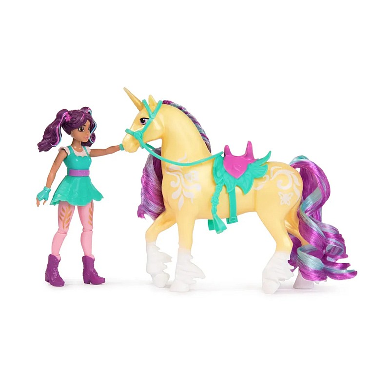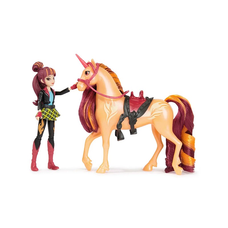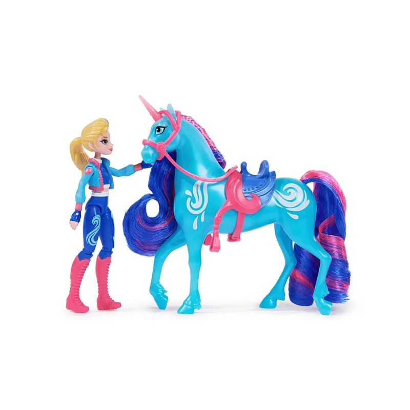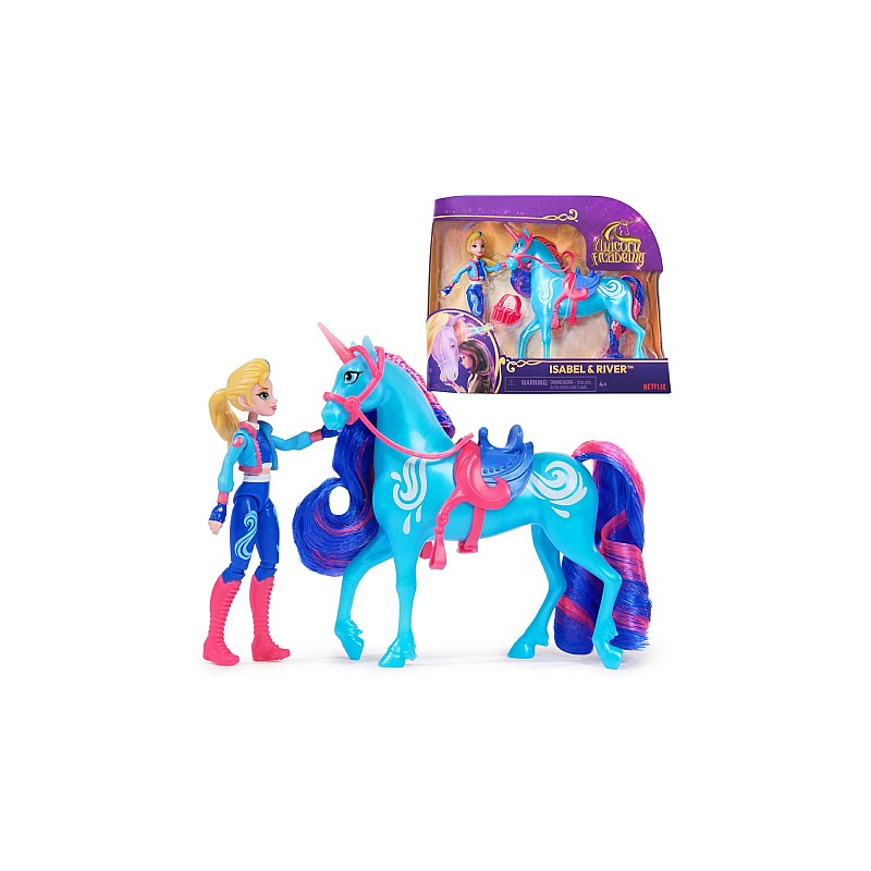 Isabel, călăreața super sportivă și ambițioasă a Academiei Unicornilor, ca păpușă complet mobilă de aproximativ 12 cm, împreună cu râul ei unicorn, dau viață celor mai magice momente din serialul Netflix, Academia Unicornilor.