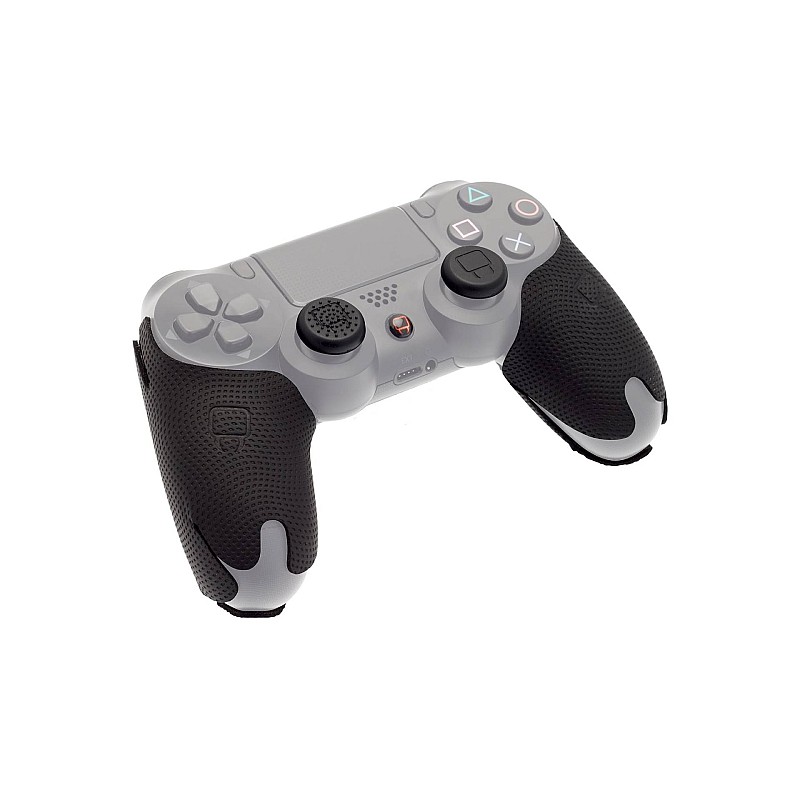 O pereche de grips texturate de cauciuc se monteaza perfect pe controller, dar si pe stickul analog de pe controllerul PS4, pentru a oferi aderenta suplimentara si confort maxim pentru un joc indelungat.