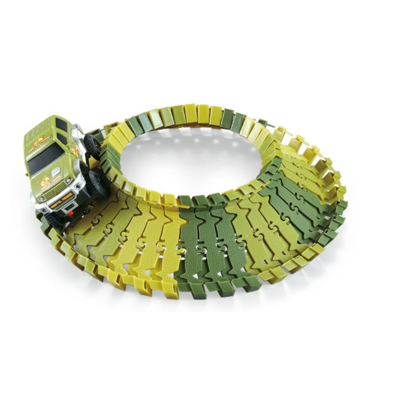 Lățimea pistei este de 3 inci, care poate fi perfect îmbinată cu setul nostru de 230 de piese pentru a forma o lume super dinozaur.