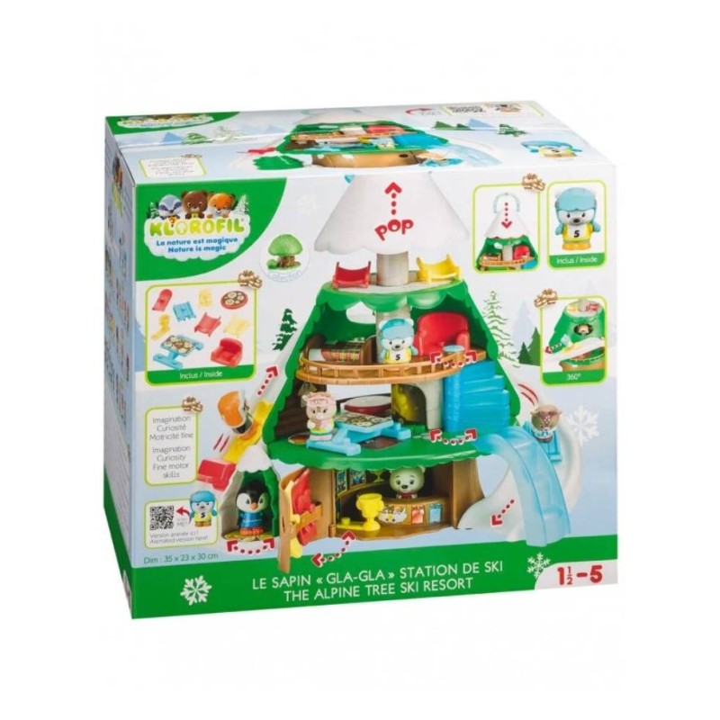 Cu bradul Klorofil din stațiunea de schi Gla-gla, copilul tău își poate stimula imaginația inventând o mulțime de povești pentru figurinele sale Klorofil!