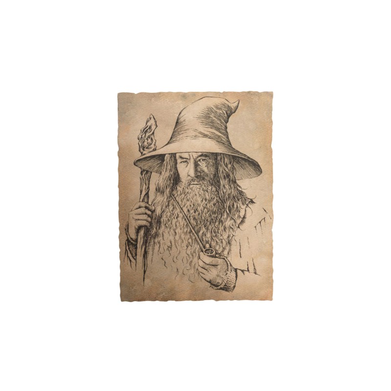 Portretul lui Gandalf cel Gri este reprodus pe hârtie de 140 de grame. Marginile sunt decupate, ceea ce adaugă autenticitate și creează o combinație frumoasă și bine gândită, alături de portretul lui Bilbo Baggins.