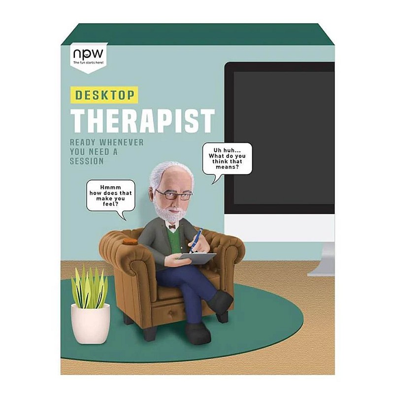 Desktop Therapist este o idee capricioasă și originală de cadou pentru studenți, terapeuți sau oricine apreciază o conversație bună - chiar dacă este cu o figură în miniatură!