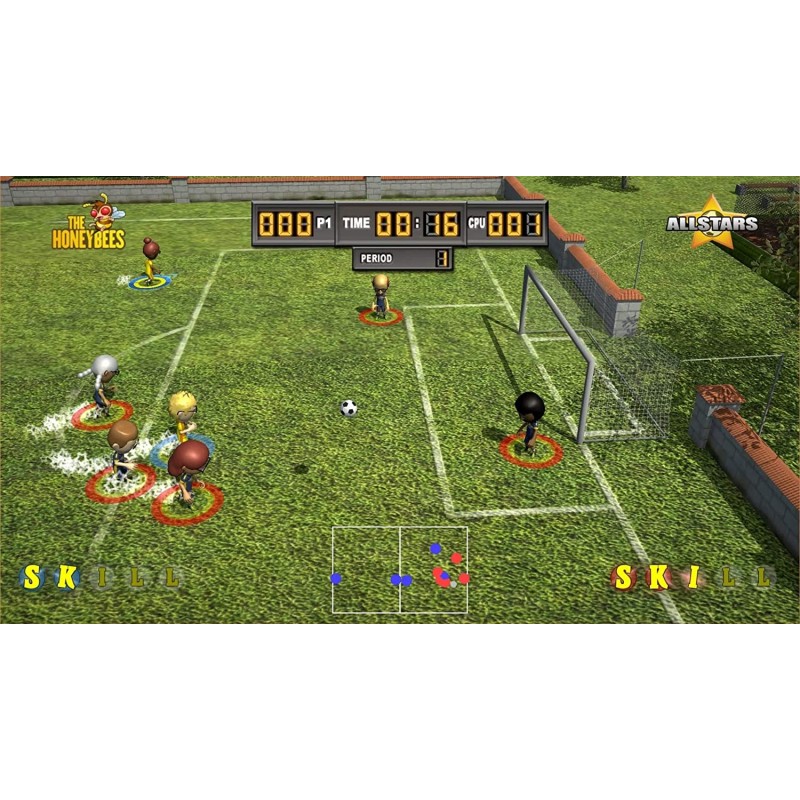 Colecția 3-in-1 Junior League Sports oferă jucătorilor posibilitatea de a lua versiuni în stil arcade de Fotbal, Baschet și Hochei pe gheață.