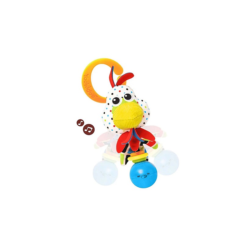 Un zornăitor activat prin mișcare, care funcționează cu baterii, cu sunete, muzică și texturi multiple.