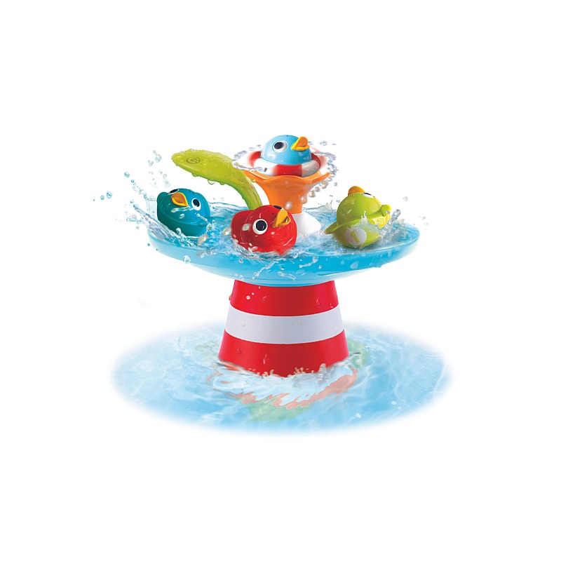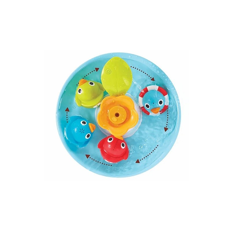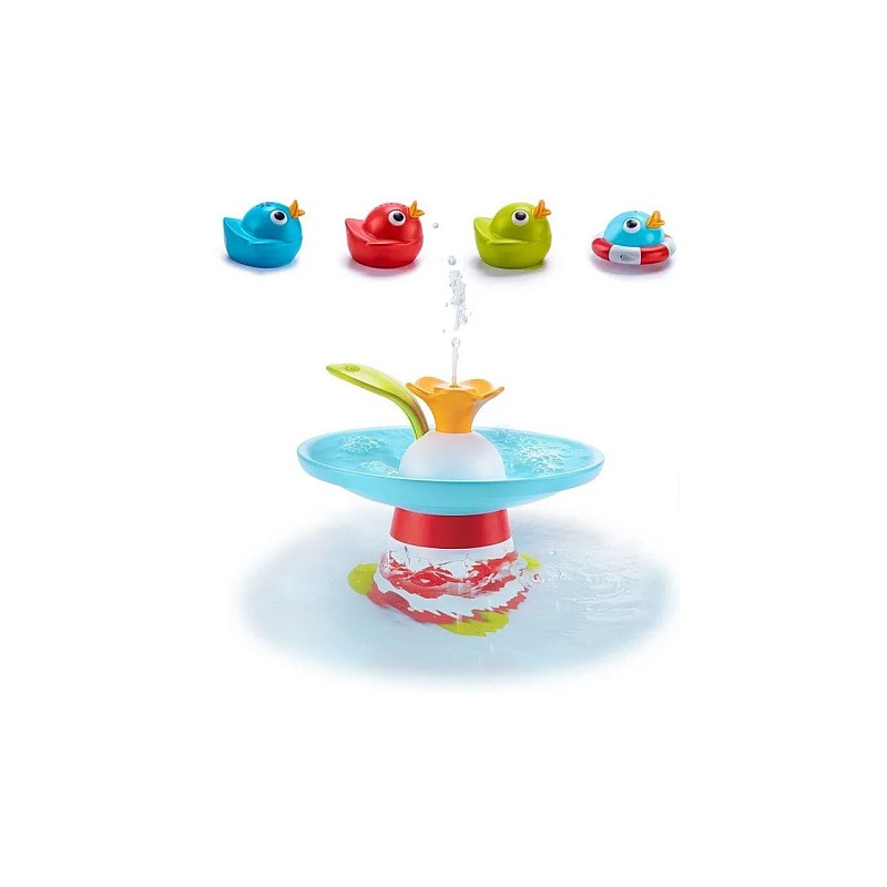 Cele 3 rățuște de cauciuc Yookidoo înoată cu viteza fulgerului! Așează a patra rățușcă pe floare și vei obține un jet de apă adevărat.