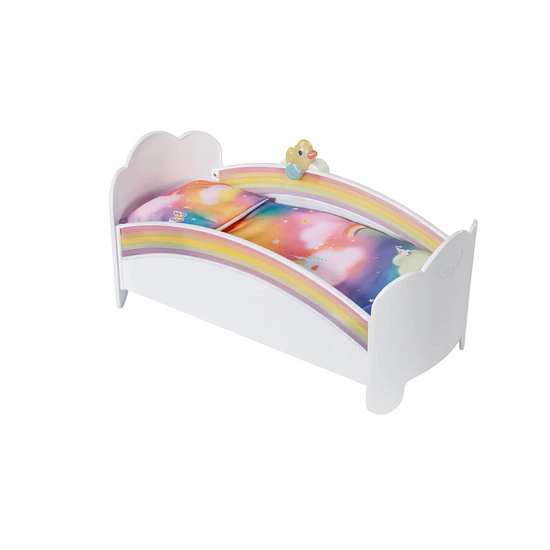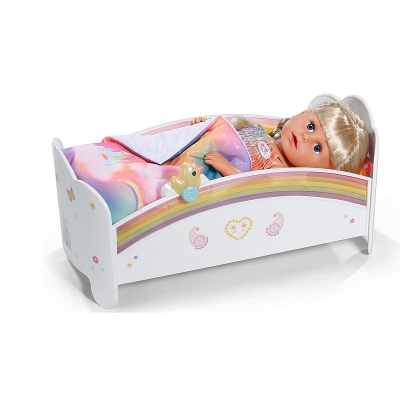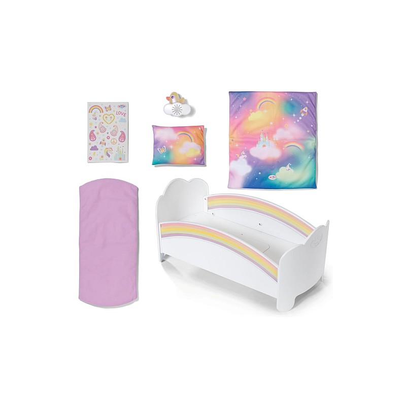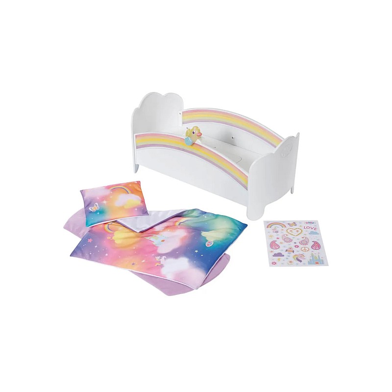Adormirea nu a fost niciodată mai frumoasă. Patul curcubeu BABY born asigură vise dulci cu designul său visător.