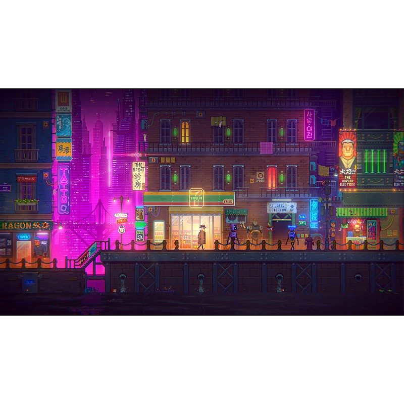 - Pixel-art în stil retro uimitor de detaliat, cuplat cu iluminarea atmosferică modernă și efecte vizuale somptuoase, dau viață acestei lumi cyberpunk unice.