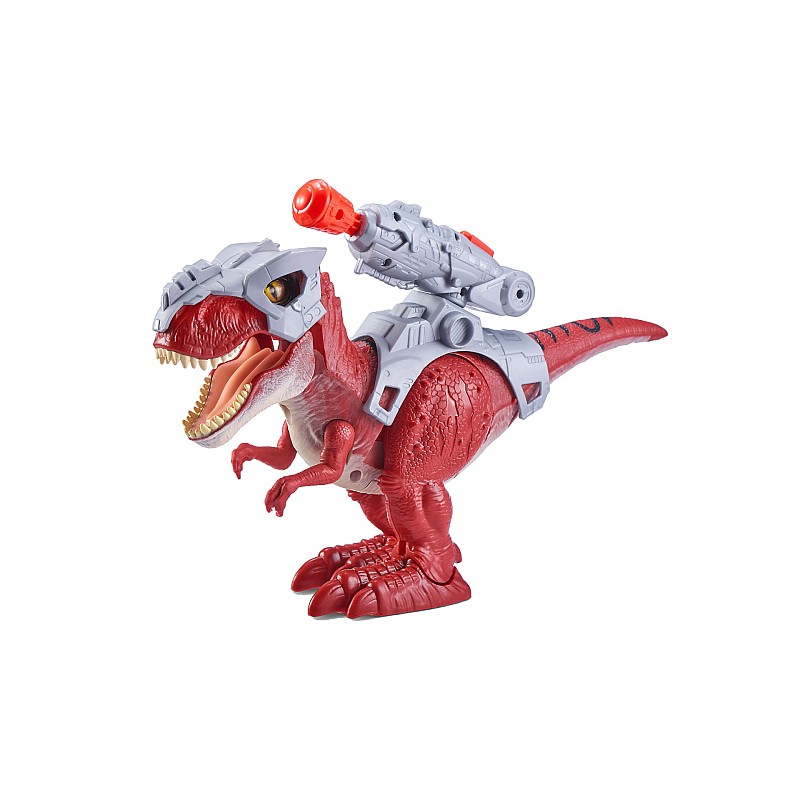 Robo Alive Dino Wars T-Rex! Atacatorul T-Rex este regele oricărei bătălii și este echipat cu armură și rachete incendiare. Păzește-ți spatele sau te va doborî.