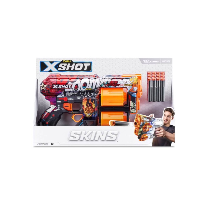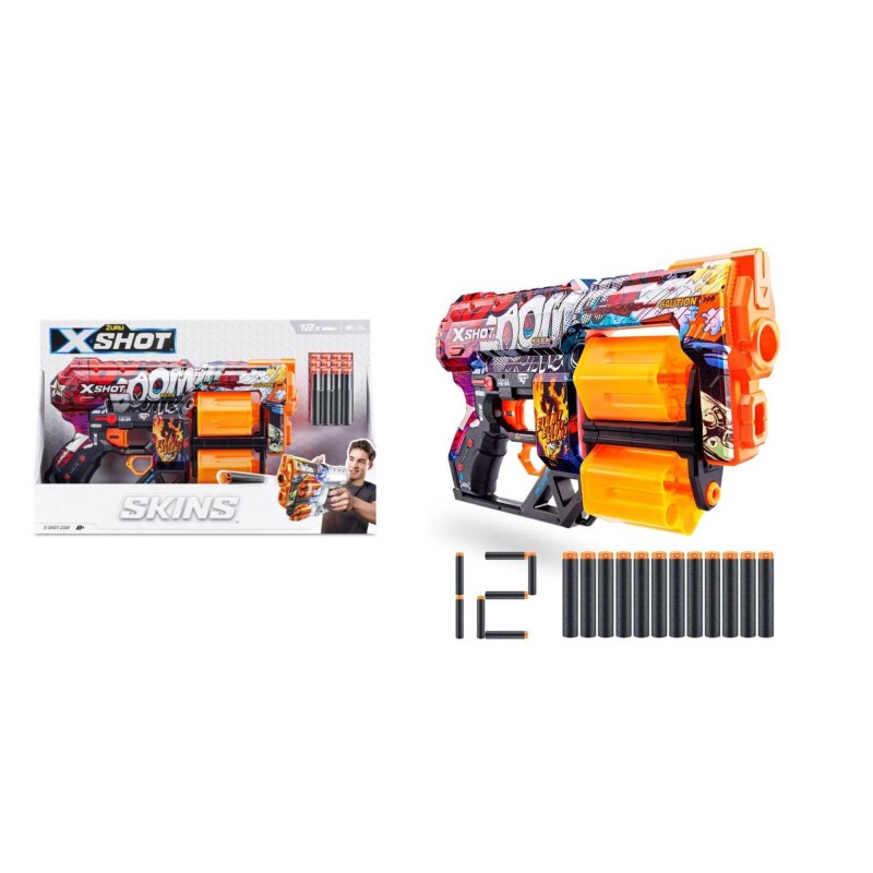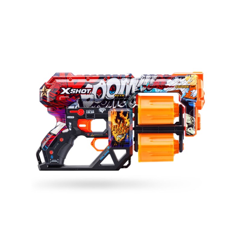 Blasterul X-Shot Skins Griefer vine cu 12 săgeți din spumă Air Pocket Technology.