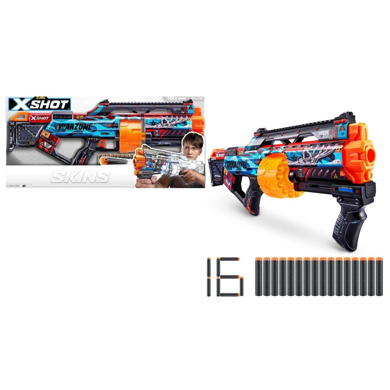 Pachetul include: 1x X-Shot Skins Last Stand Blaster X-Shot Skins 16x săgeți din spumă Air Pocket Technology.