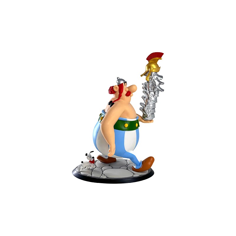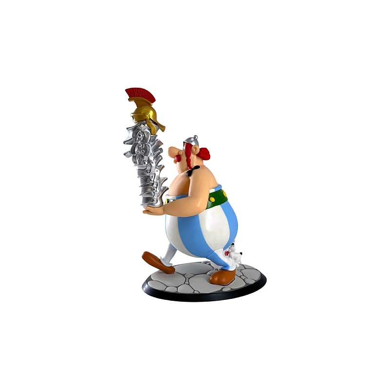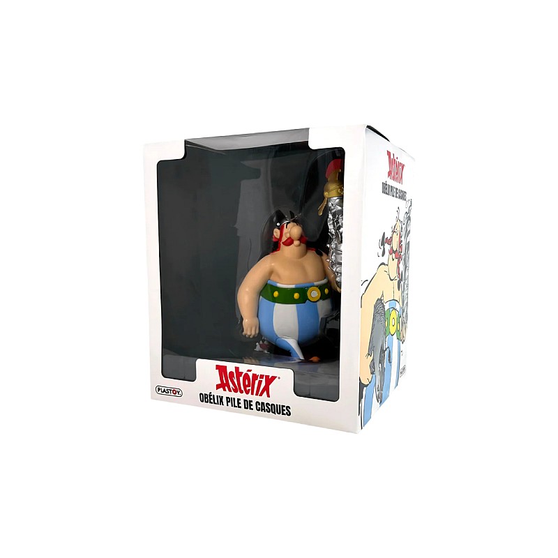 Aceasta figurina il arata pe Obelix purtând o grămadă de coifuri romane ca trofeu al exploatărilor sale.