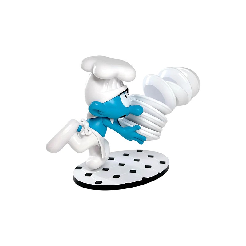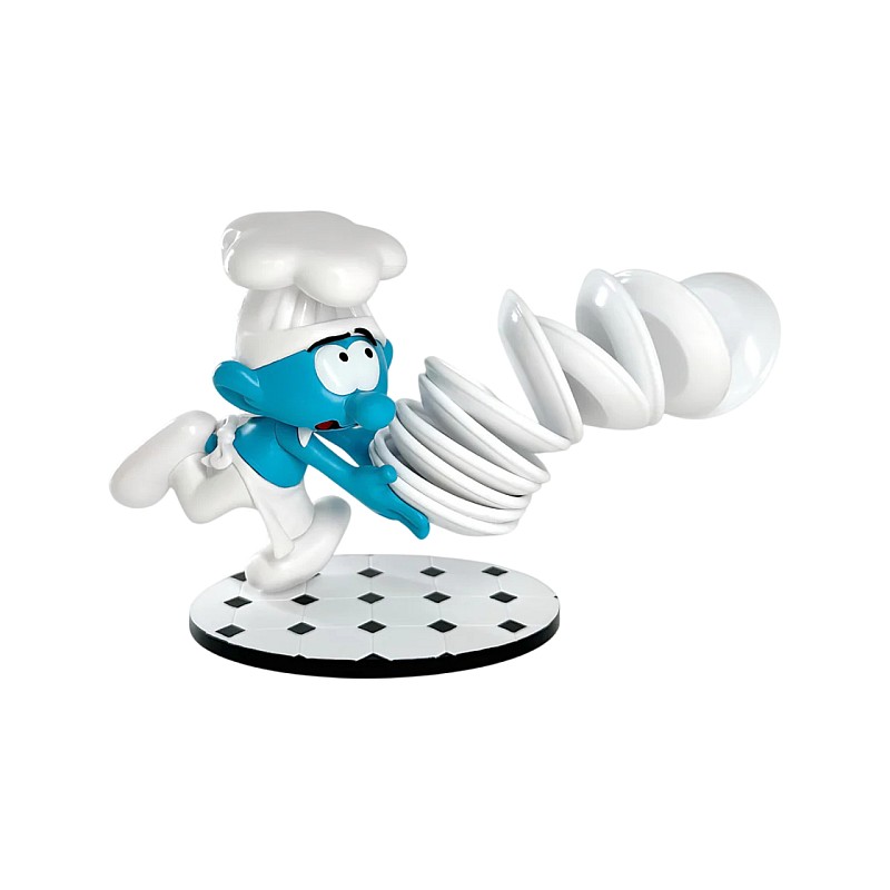 Adaugă o notă de haos hilar colecției tale cu Cook Smurf și teancul său de farfurii.