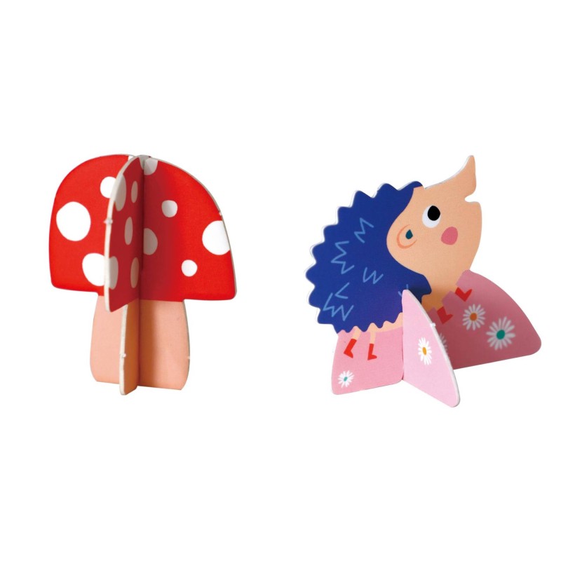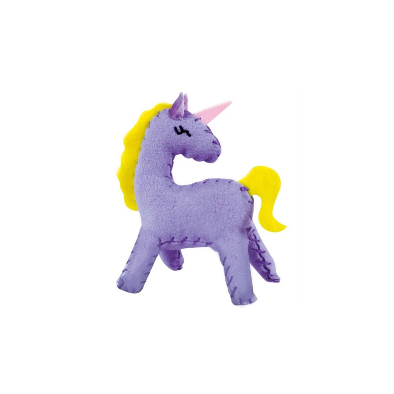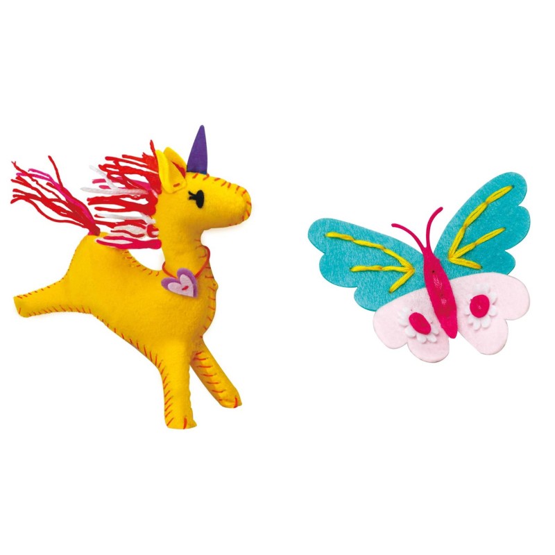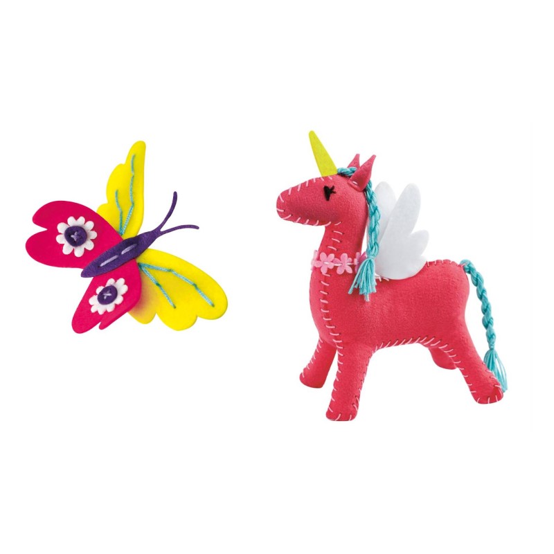 Această trusă încântătoare are figurine 3D din carton și cusute, inclusiv unicorni și flori.