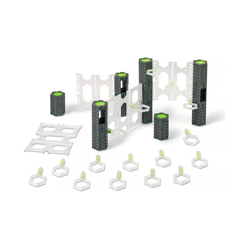 Cu pereți, coloane și balcoane modulare, acest set îți permite să creezi piste suspendate spectaculoase și să duci bilele într-o călătorie gravitațională plină de acțiune și ingeniozitate.