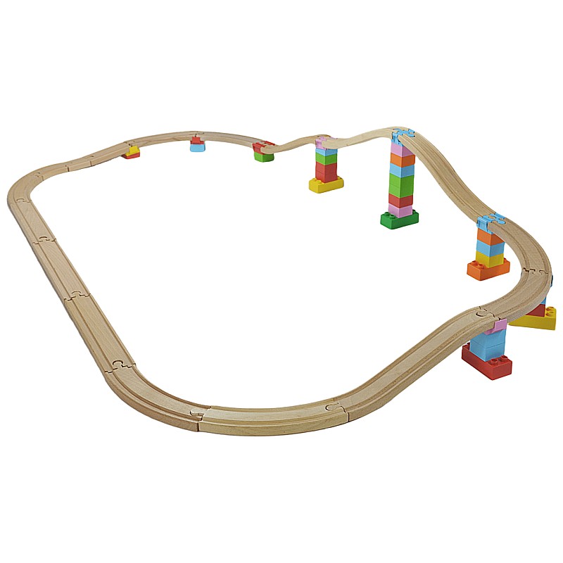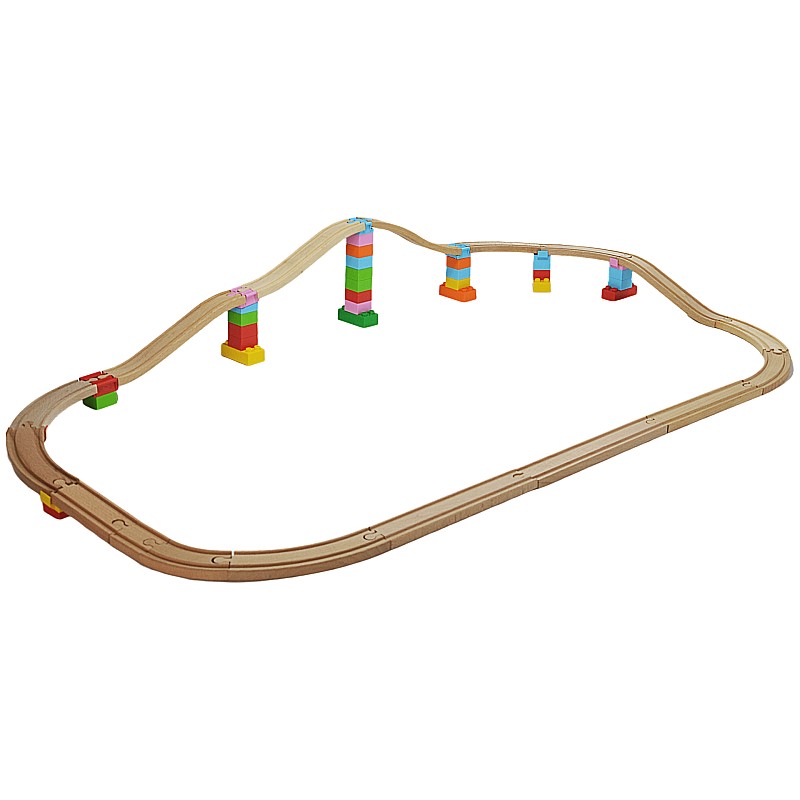 Acest set oferă diferite oportunități de joacă creativă și poate fi combinat perfect cu blocurile de construcție similare și șinele de tren din lemn pe care le aveți deja.