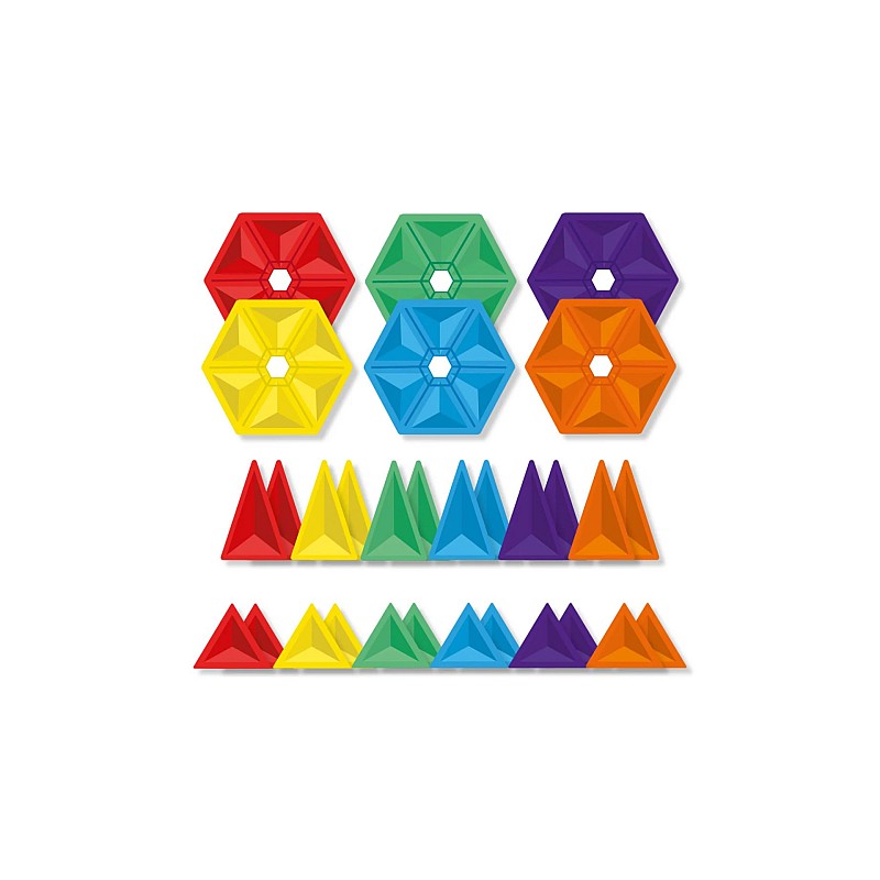 Rainbow Geometry Pack este special creat pentru a încuraja micii arhitecți să experimenteze cu forme, să descopere relațiile dintre ele și să își dezvolte abilitățile motorii fine.