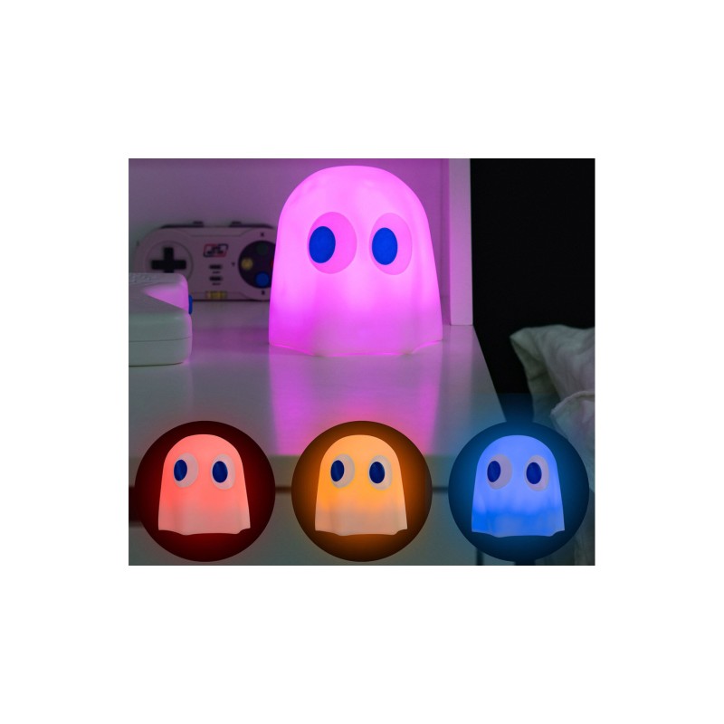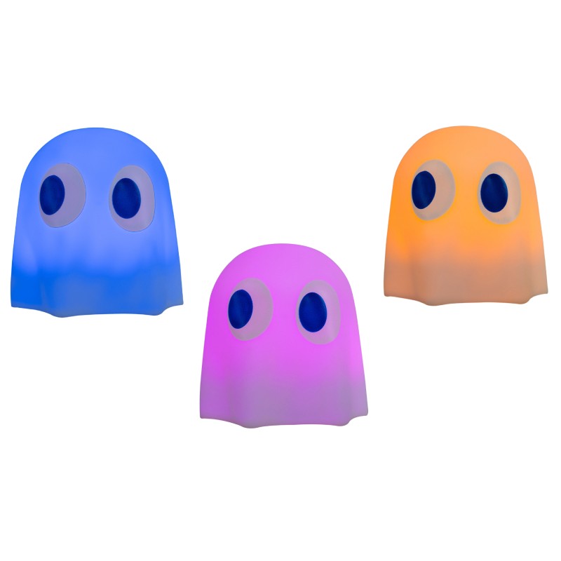 Adu distracția nostalgică de arcade în casa ta cu PAC-MAN Colour-Changing Mood Light, o lampă fantomă 3D din silicon moale.